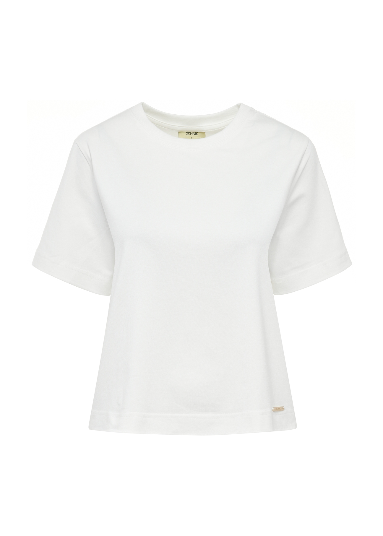 Model je vyrobený z vysokokvalitnej bavlny s prímesou elastanu, vďaka čomu ponúka nielen komfort pri nosení, ale aj vysokú odolnosť. Tričko je mäkké na dotyk a príjemné k pokožke, čo z neho robí ideálnu voľbu na každodenné nosenie. Štandardný strih, krátke rukávy a okrúhly výstrih zaisťujú voľnosť pohybu, pričom zároveň lichotia postave. Jemný kovový detail v zlatej farbe s logom značky dodáva modelu elegantný a módny nádych.