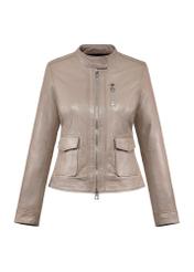 Praktickosť bundy podčiarkujú tri predné vrecká – dve zapínané na patentky a jedno na zips – ktoré spájajú funkčnosť s estetikou. Kovové prvky v striebornej farbe jemne dopĺňajú béžový odtieň kože a dodávajú celkovému vzhľadu sofistikovanosť. Unikátnym detailom tejto bundy je podšívka so štýlovými bodkami, ktorá nielen zvyšuje komfort pri nosení, ale aj pridáva osobitý šarm. Béžová farba robí bundu univerzálnym doplnkom do každého šatníka – perfektne ladí s pastelovými aj kontrastnými kombináciami.