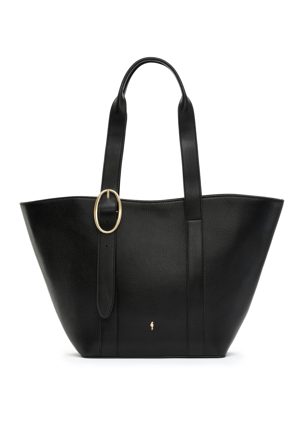 Veľká čierna kožená shopper kabelka je zaručeným štýlom a každodennou praktickosťou. Dokonale sa do nej zmestia všetky potrebné veci.