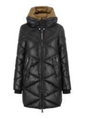 Čierna dámska bunda s prešívaním a kapucňou. Model je zateplený syntetickým páperím. Rukávy ukončené lemami pre lepšiu ochranu pred chladom. Bunda sa zapína na zips.