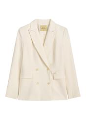 Model sa zapína na dve gombíky, ktoré zdôrazňujú pás a dodávajú mu ľahkosť, zatiaľ čo klasický charakter podčiarkujú dlhé, rovné rukávy.