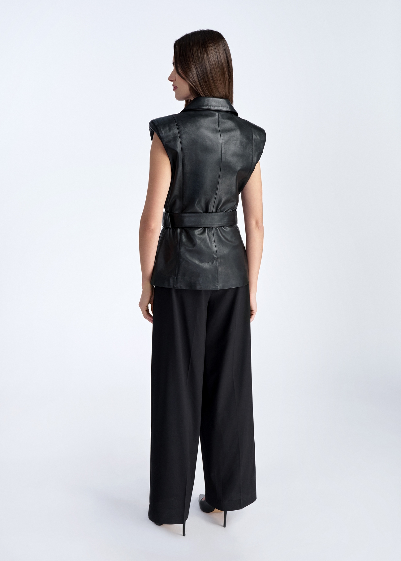 Čierna dámska kožená vesta je kombináciou klasiky a moderného štýlu. Tento model dodá každému outfitu originálny nádych. Kožená vesta bola navrhnutá pre ženy, ktoré si cenia štýl aj funkčnosť.