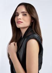 Vesta je vyrobená z najkvalitnejšej prírodnej ovčej kože typu Nappa, ktorá sa vyznačuje mäkkosťou, odolnosťou a jemným leskom, čo podčiarkuje luxusný charakter materiálu. Model je vybavený dvoma praktickými vonkajšími vreckami s chlopňami, ktoré nielenže dodávajú eleganciu, ale aj poskytujú ideálne miesto na drobnosti. Regulovateľný pás s prackou v páse umožňuje dokonalé prispôsobenie postave a zvýrazňuje ženské krivky.