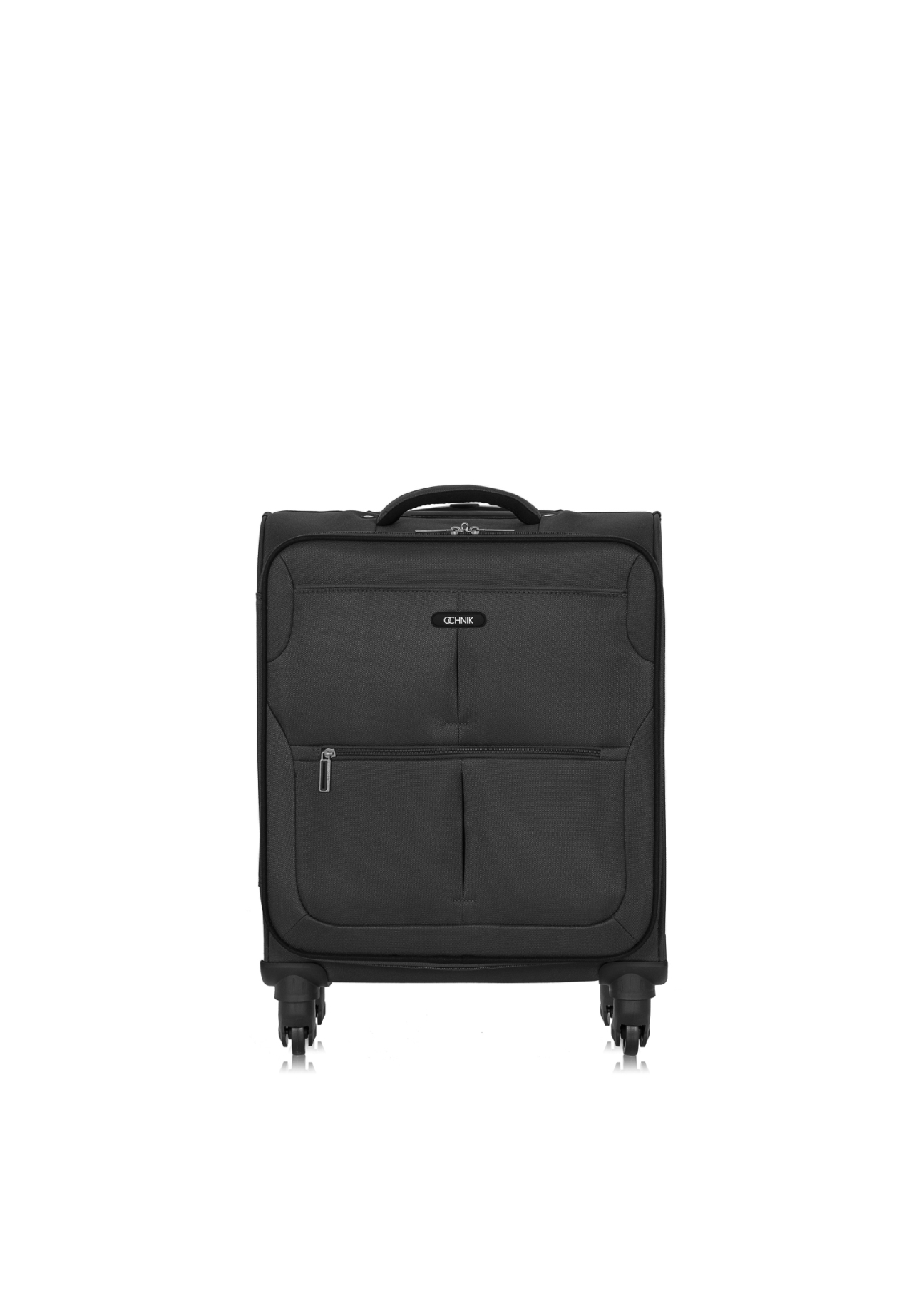 Malý kufor vyrobený z odolného nylonu proti poškriabaniu. Jednotlivé kolieska, vyrobené z plastu, ložiskové, otočné o 360 stupňov. Vo vnútri sa nachádza priestor na oblečenie uzatvárateľný bezpečnostnými pásmi. Na stene klopy veľké vrecko uzatvárateľné na zips, pohodlné sieťované vrecko tiež na zips a dve malé otvorené vrecká. Na vonkajšej strane vpredu dve vrecká na zips.