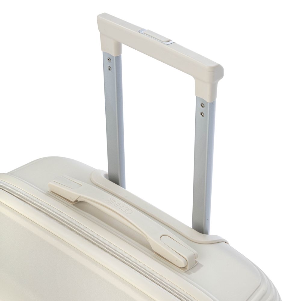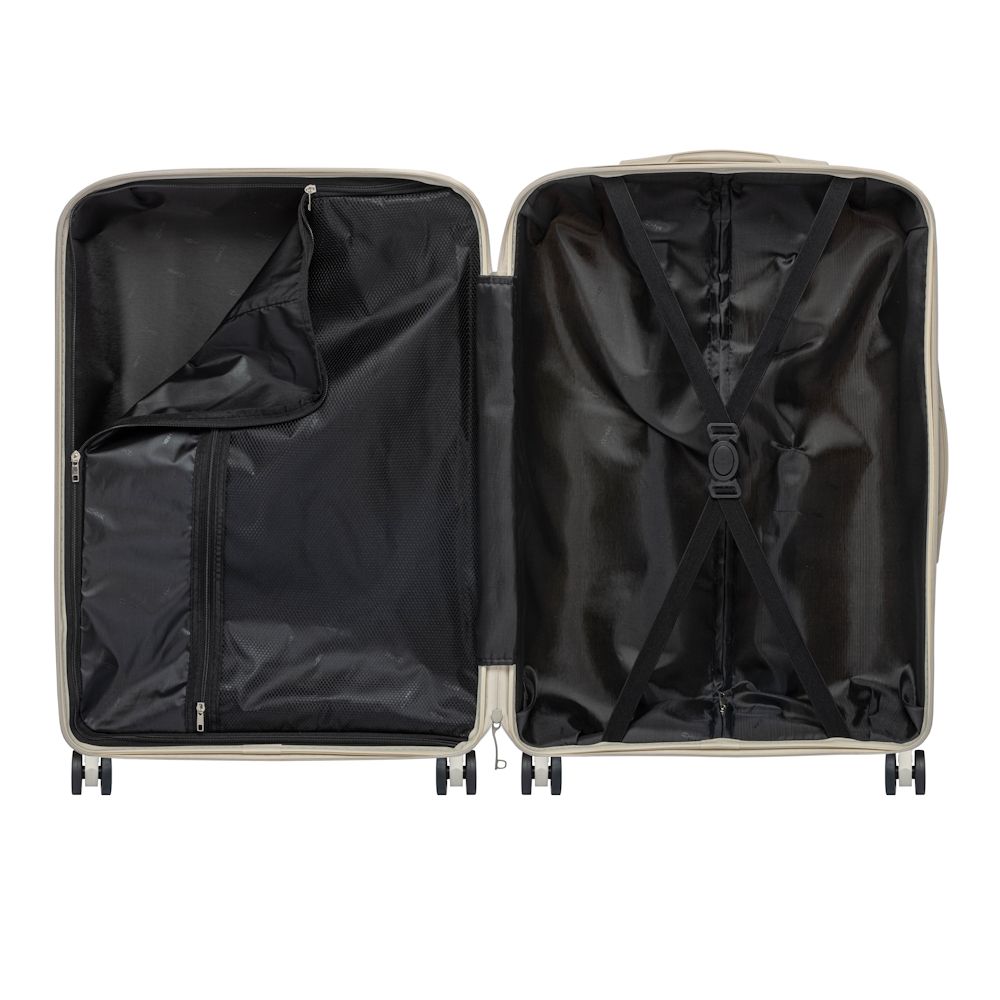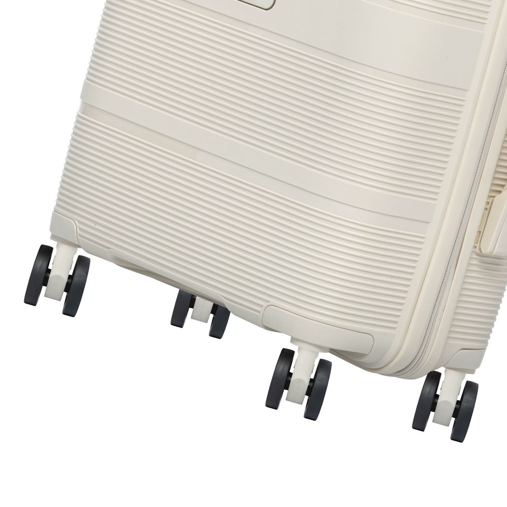 Malý kufor vyrobený z elastického a odolného materiálu proti poškrabaniu – PP (polypropylén). Kufor je vybavený dvojitými kolieskami s rozsahom otáčania 360°. Vďaka gumovej rukoväti a vysúvacej rukoväti je možné ho pohodlne transportovať. Vo vnútri je kufor rozdelený na dve komory. Jedna časť uzatvárateľá textilnou prepážkou na zips, obsahuje praktickú sieťovanú vrecko, druhá časť je vybavená elastickými popruhmi na zabezpečenie batožiny proti pohybu. Kufor je vybavený numerickým zámkom.