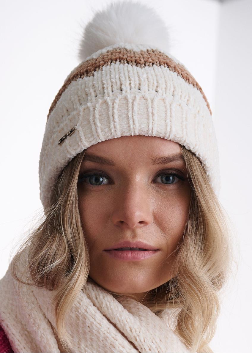 Dámska krémová klapka na ucho CZADF-0042-81(Z24)-01Dámska krémová  čiapka s ušami CZADF-0042-81(Z24)
