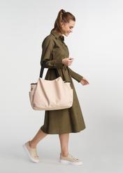 Taška je vyrobená z odolného, vodoodpudivého nylonu, ktorý je rezistentný voči nečistotám a ľahko sa čistí. Nadčasová, jemná farba jej dodáva elegantný vzhľad a hodí sa ku každému outfitu. Celkový dizajn dopĺňajú kovové detaily v zlatej farbe a jemné logo značky na prednej strane, ktoré podčiarkuje jej sofistikovaný charakter.