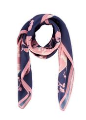 Tento model je vyrobený z mäkkého, tenkého materiálu. Ružový základ poskytuje perfektné pozadie pre krémové kvetinové vzory. Šatku možno elegantne omotať okolo krku alebo neformálne prehodiť cez plecia.