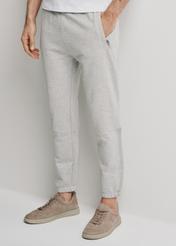 Pánske tepláky z bavlny s viskózou. Dve predné vrecká a jedno zadné vrecko na zips. Pás so šnúrkou na stiahnutie a viazaním pre lepšie prispôsobenie a väčšie pohodlie. Konce nohavíc so šnúrkou na stiahnutie.