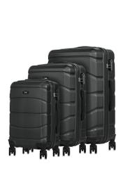 Súprava kufrov vyrobená z veľmi ľahkého, pevného materiálu ABS, odolného voči poškodeniu. Dvojité kolieska vyrobené zo zmesi gumy a kaučuku, osadené ložiskami, otočné o 360 stupňov. Vo vnútri kufrov je priestor rozdelený na dve časti: jedna časť je uzatvárateľná zipsom, druhá elastickými zabezpečovacími popruhmi.