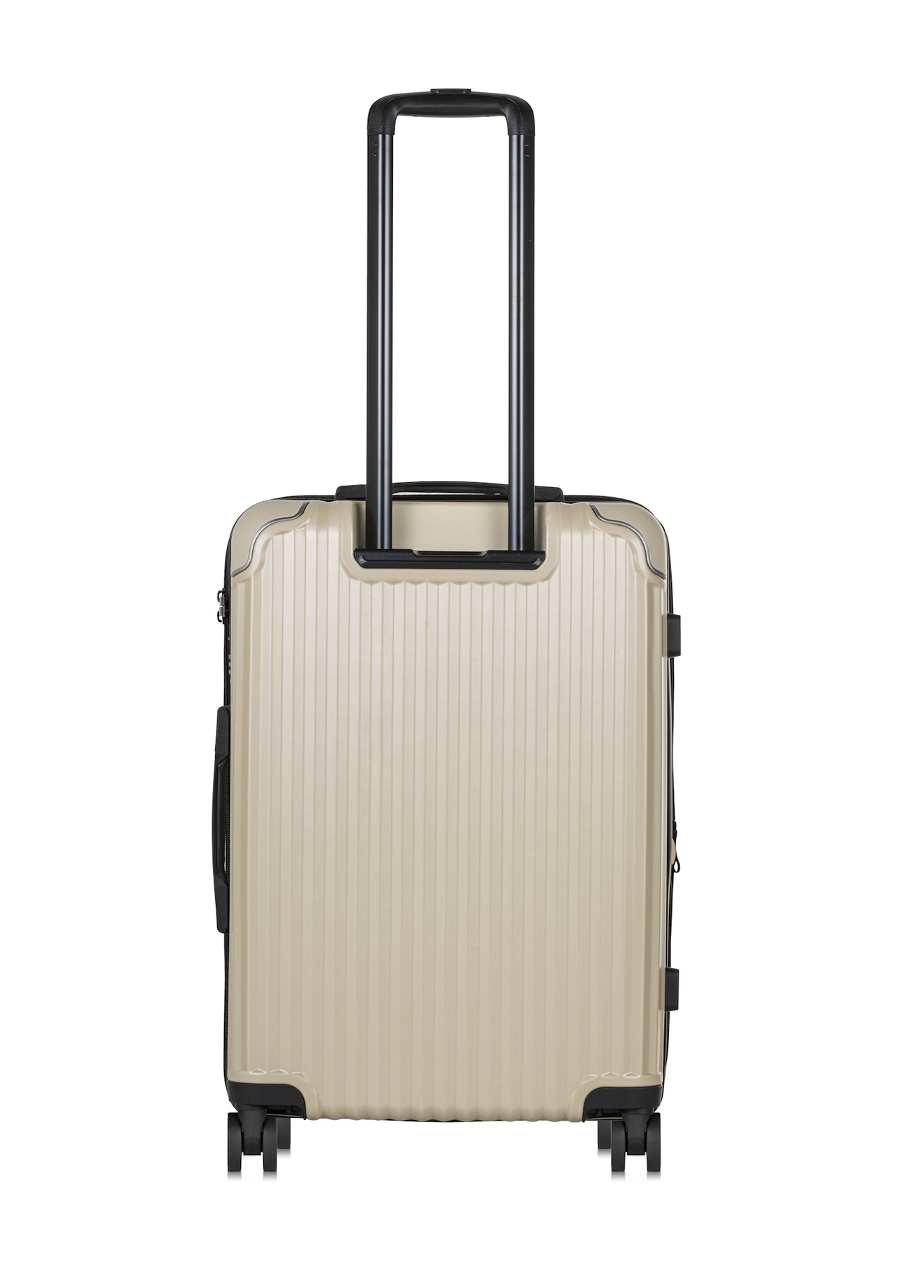 Súprava pevných kufrov. Vyrobená z veľmi ľahkého, odolného a nárazuvzdorného materiálu ABS. Kufre sú jednokomorové, uzatvárané na obojstranný zips. Vnútro kufrov je rozdelené na dve časti – jedna je uzatváraná látkovou prepážkou na zips, druhá je vybavená elastickými upevňovacími popruhmi. Každý kufor má navyše praktické sieťované vrecko. Dvojité kolieska z kombinácie kaučuku a gumy sú ložiskové a otočné o 360 stupňov. Kufor je možné rozšíriť vďaka dodatočnému zipsu.