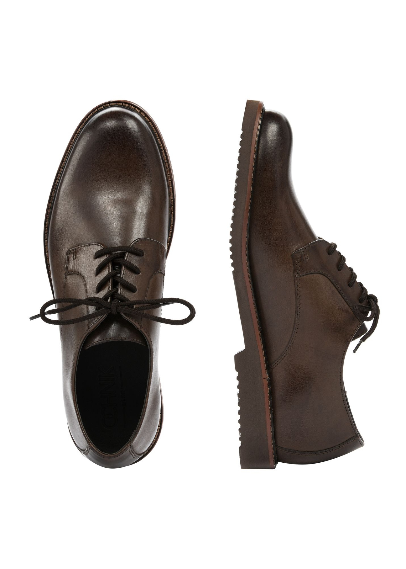 Tmavohnedé kožené pánske poltopánky sú vhodné na elegantné príležitosti, ale aj na každodenné nosenie. Môžete ich kombinovať napríklad s cigaretovými nohavicami a bavlnenou košeľou.