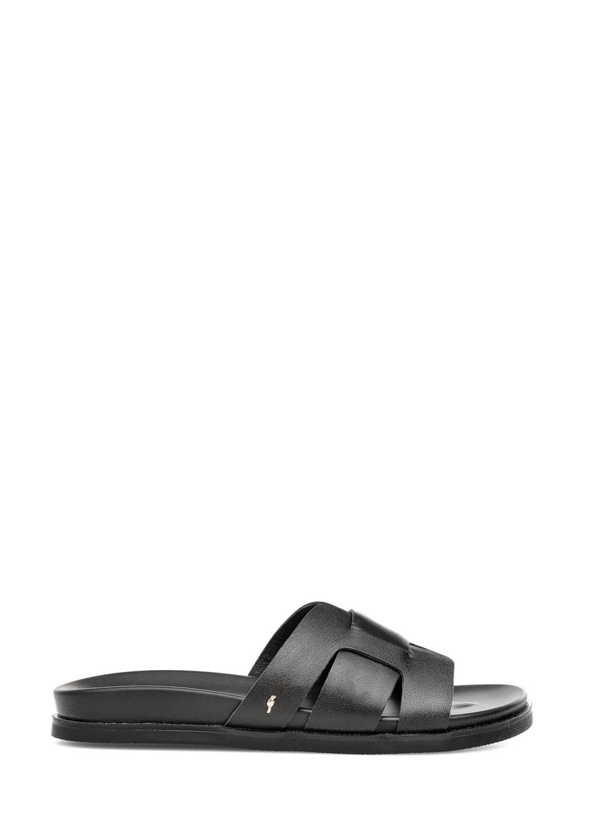 Čierne žabky z pletenej kože BUTYD-1065-99(W24)-06Kožené čierne šľapky s pleteným vzorom BUTYD-1065-99(W24)